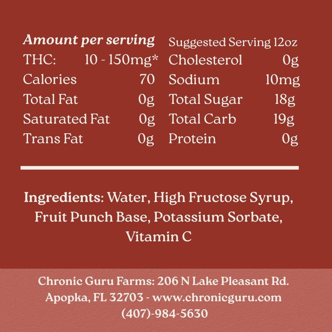 Quench your thirst with Chronic Guru’s cannabis-infused Fruit Punch. Bursting with tropical flavor and powered by rapid nano technology, this refreshing drink delivers quick and vibrant taste in every sip.