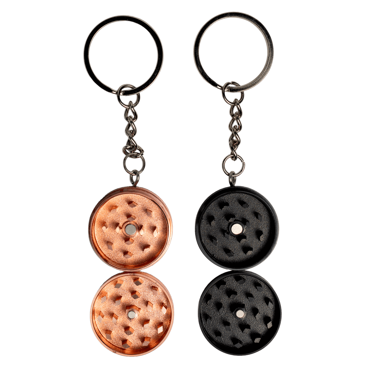 Crafted from durable aluminum alloy, the single-layer grinder features sharp metal teeth for a smooth, even grind every time. The magnetic lid keeps everything securely in place without the hassle of threads, making it easy to open and close with one hand. A split ring with a short link chain adds portability and makes attaching it to your essentials effortless.
