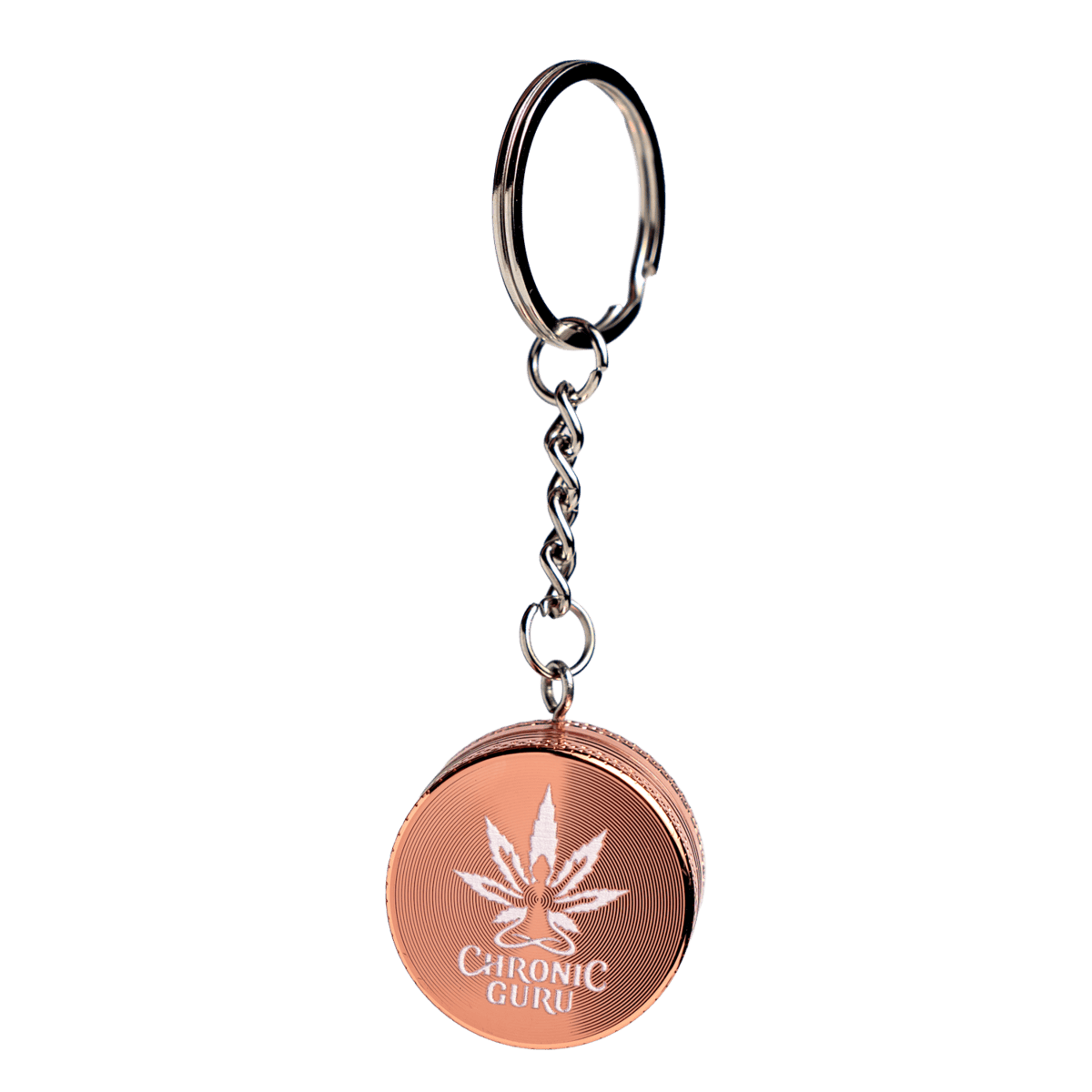 The CG Keychain Grinder is a compact, magnetic-lid grinder designed for convenience. Featuring sharp metal teeth and a single-layer design, it delivers a smooth grind without the bulk. The split ring and link chain make it easy to clip onto your keys or bag, while the Chronic Guru logo adds a subtle nod to the culture. Small, simple, and always ready.