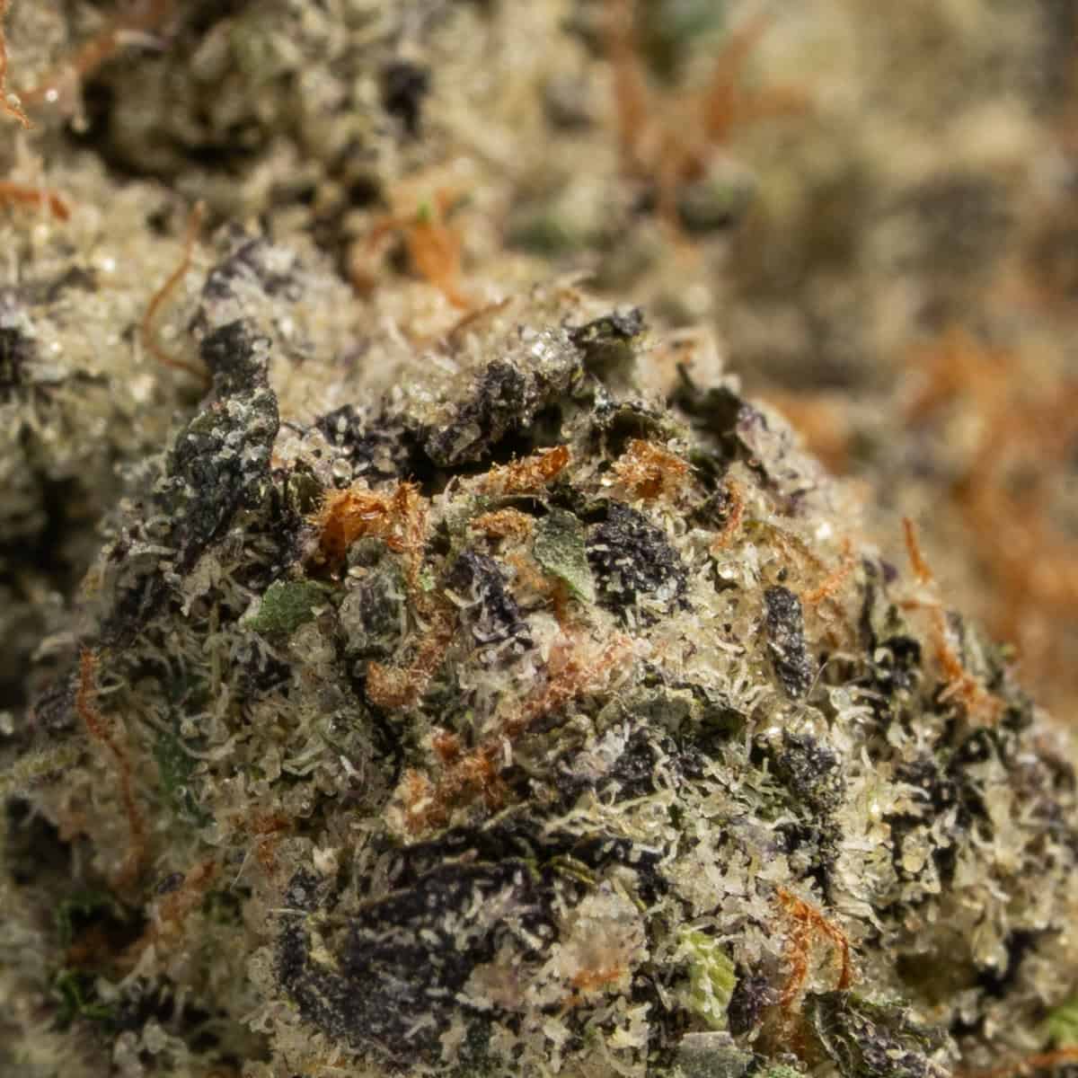 High Octane Mintz displays chunky, tightly packed buds with hues of deep green and icy lavender. A thick coat of trichomes gives the buds a shimmering finish, while amber pistils weave throughout, hinting at its potency.